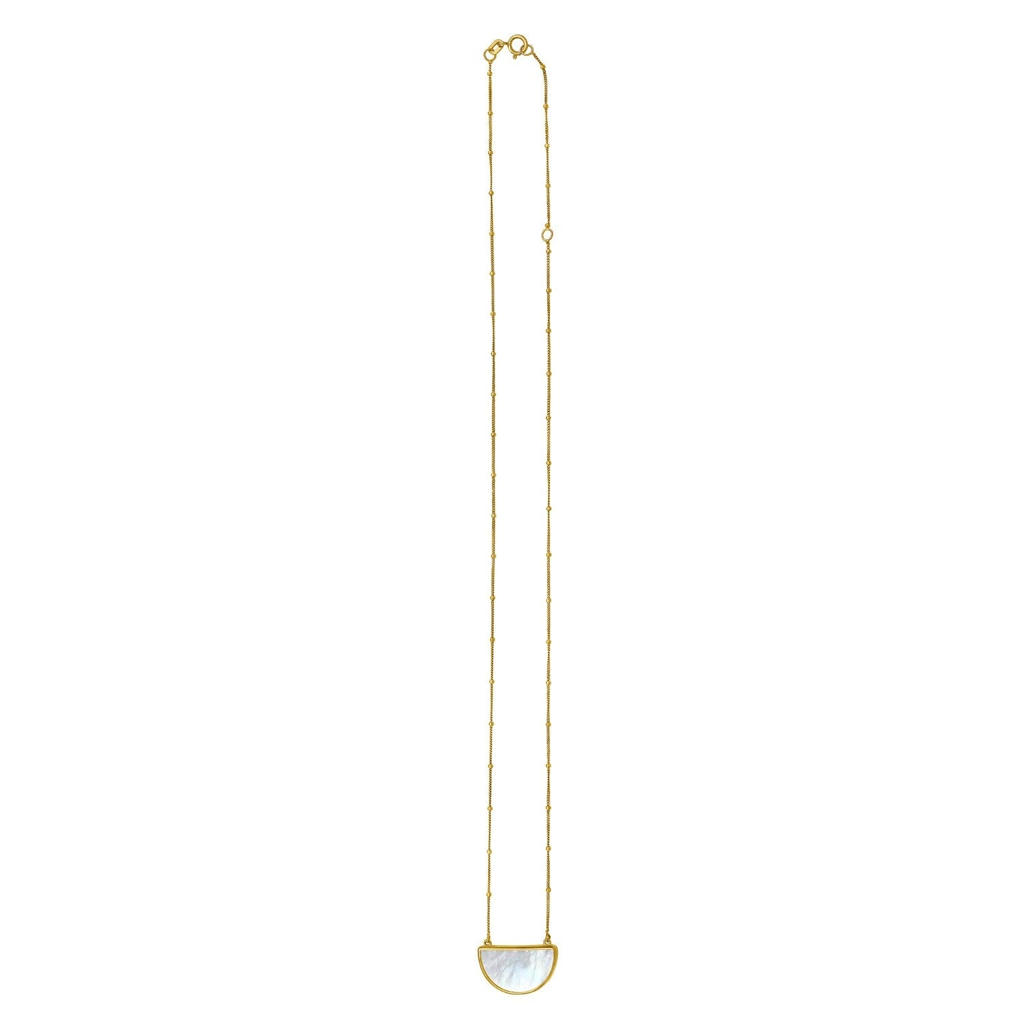 MOP Geometric Gem Half Moon Necklace in 14K Yellow Gold -