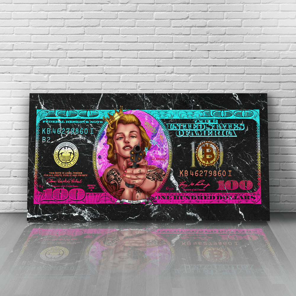 100 Dollar Marliyn Monroe Inspired Canvas Wall Art. Artwork by Rebhorn.
